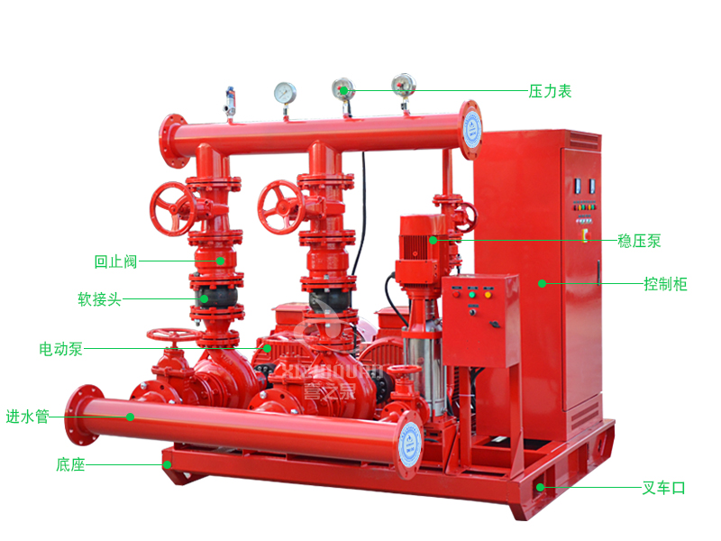 2.在市電正常時電動泵組投入工作,當供電出現故障,電動消防泵不能正常投入使用時,柴油機消防泵組能自動投入運轉確保消防滅火正常進行,柴油機消防泵組配置各種自動功能,滿足標準的要求,保證設備長期正常待機狀態,隨時投入滅火工作。